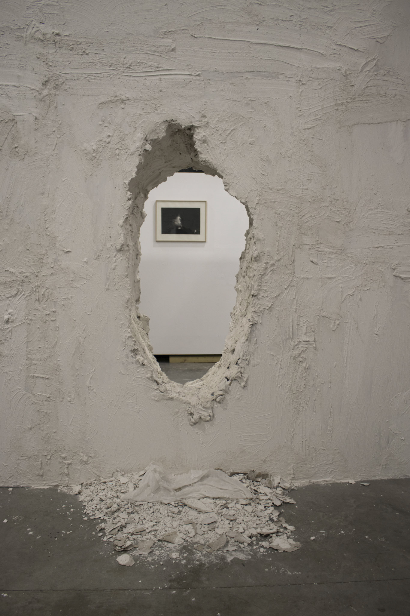 installation, matériaux et dimensions variables, 2017 Un nouveau mur à pris place dans l’espace d’exposition, il contraint la déambulation.S’offrent les choix de traverser ce mur par l’ouverture ou encore d’emprunter une voie de contournement.